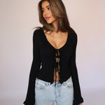Das Modell verwendet unsere Brustwarzenabdeckungen unter der Strickwäsche.