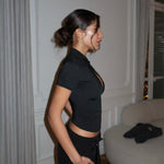 Flot basic top i det blødeste materiale med cut out og knaplukning. Toppen har meget stræk og sidder smukt til kroppen.