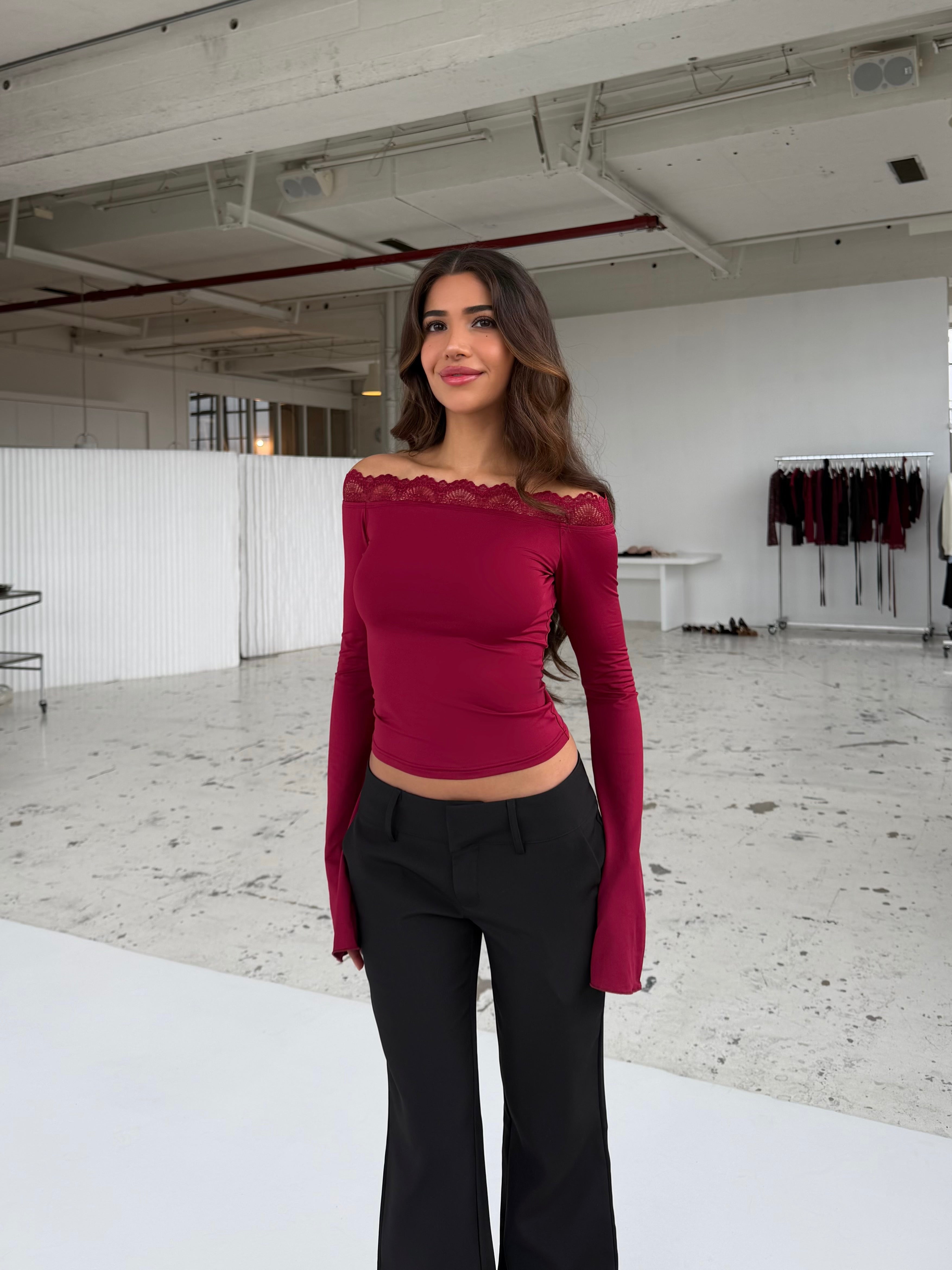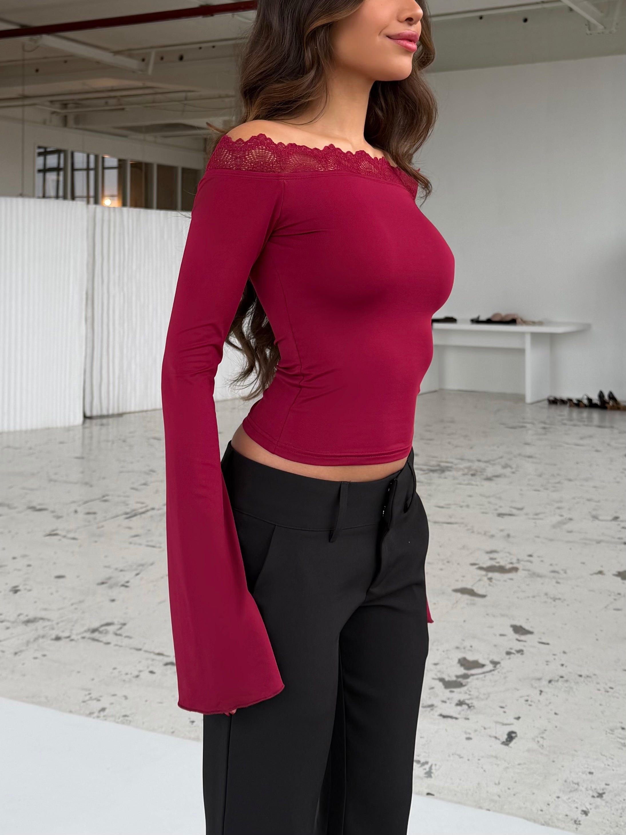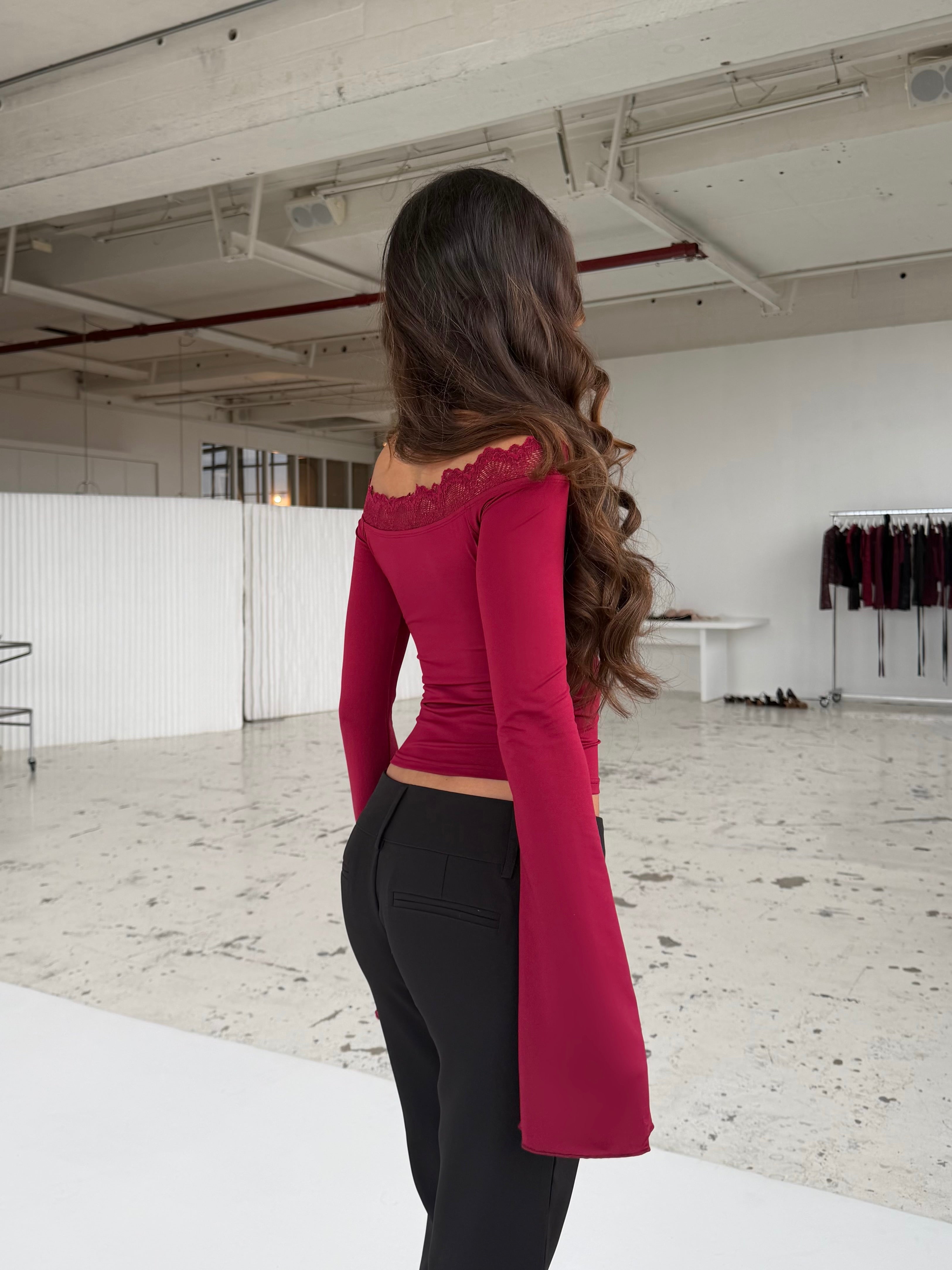 Bari basic lace top - mørk rød (forudbestilling)