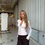 Cardigan i det blødeste materiale, lavet af uldblanding. Den er med knapper og sidder flot til kroppen.