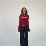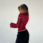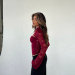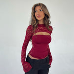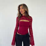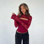 Smuk blonde top i materiale med meget stræk, der sidder flot til kroppen. Toppen har lange ærmer med blonde foroven samt langs hele ryggen.