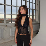 Toppen kan bindes på flere måder, så du kan tilpasse looket efter dit behov. Du skal selv binde toppen og du kan derfor også selv styre hvor nedringet den skal være.