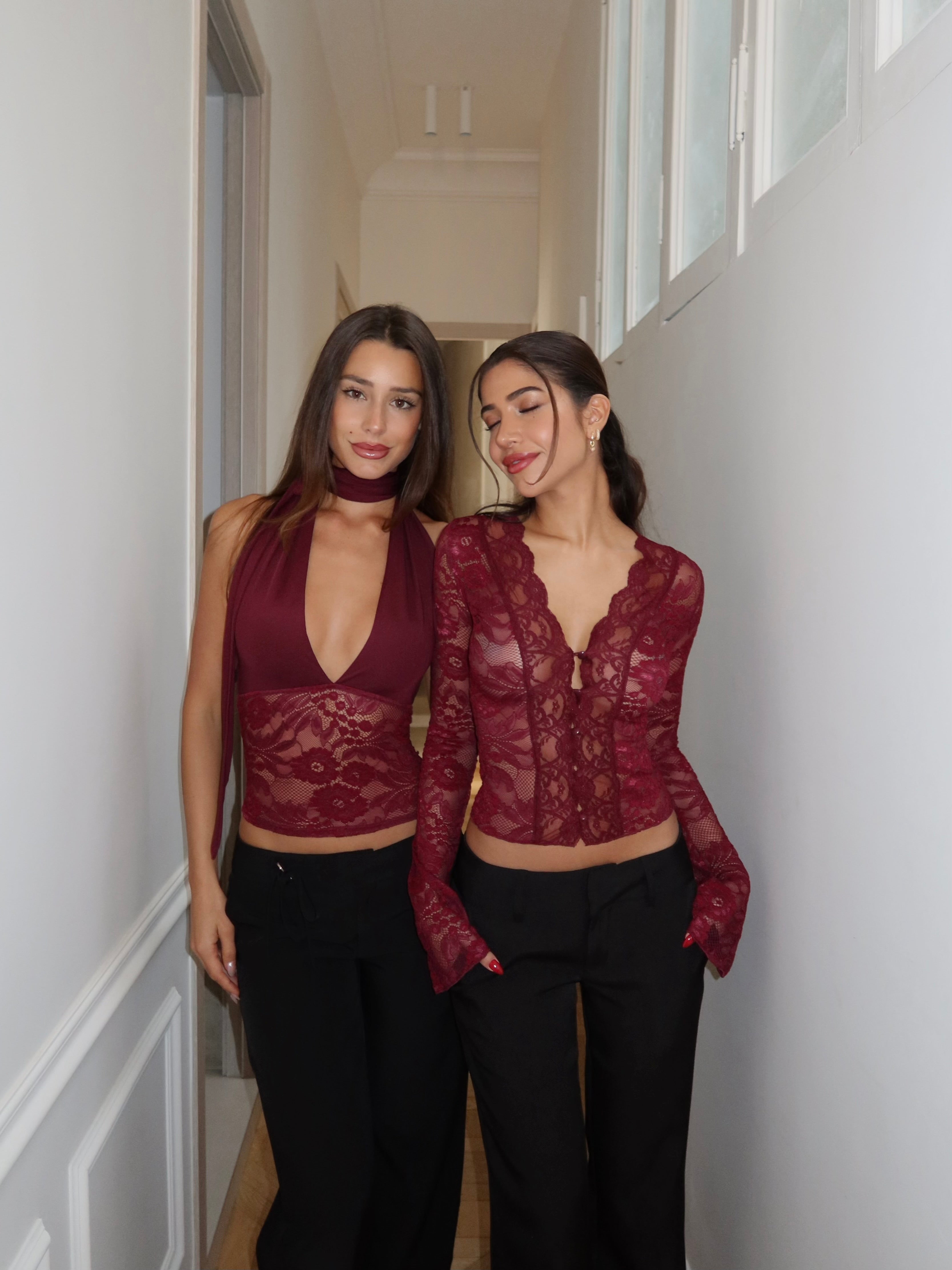 Pretty Luna lace top - bordeaux (forudbestilling)