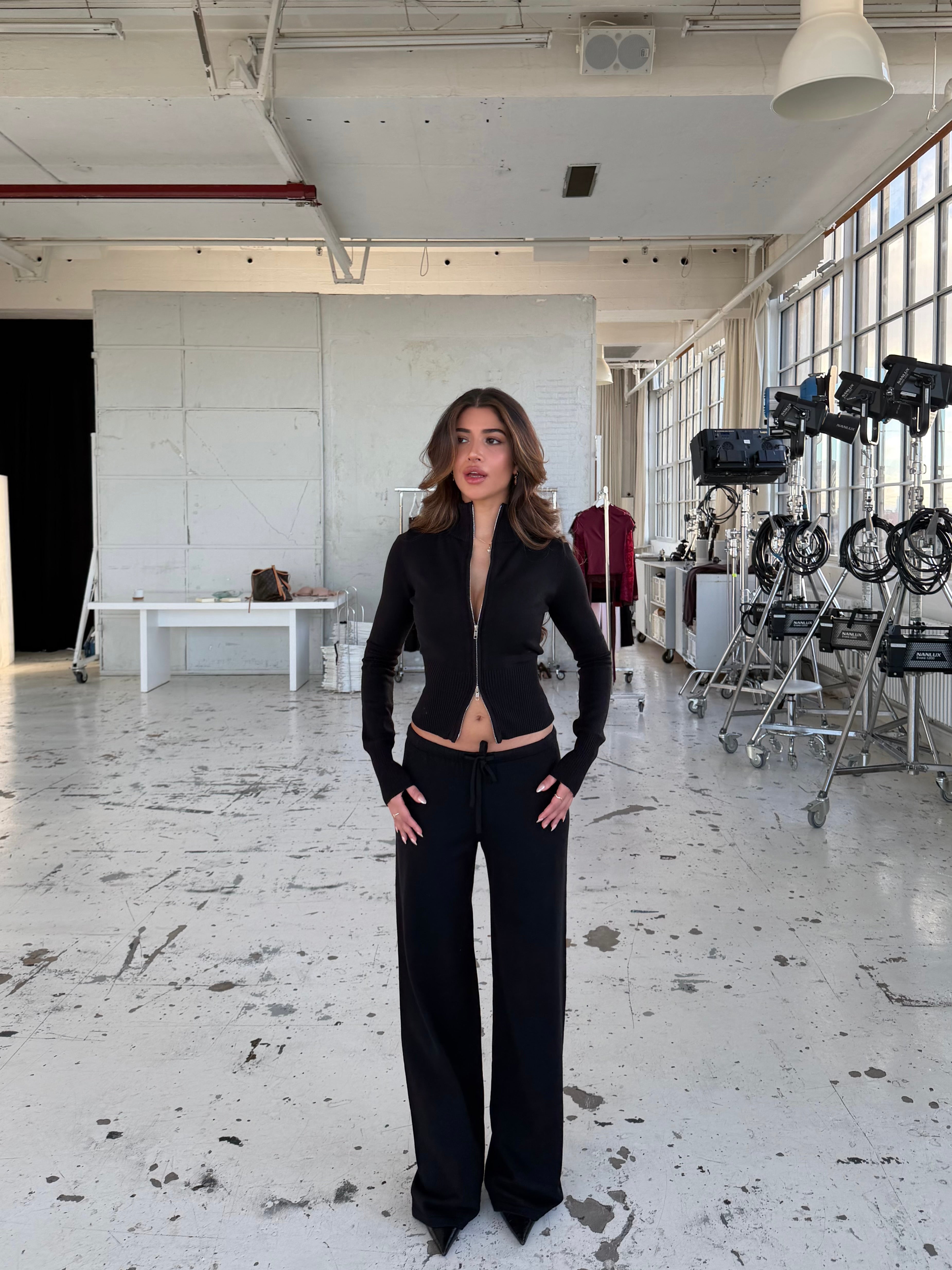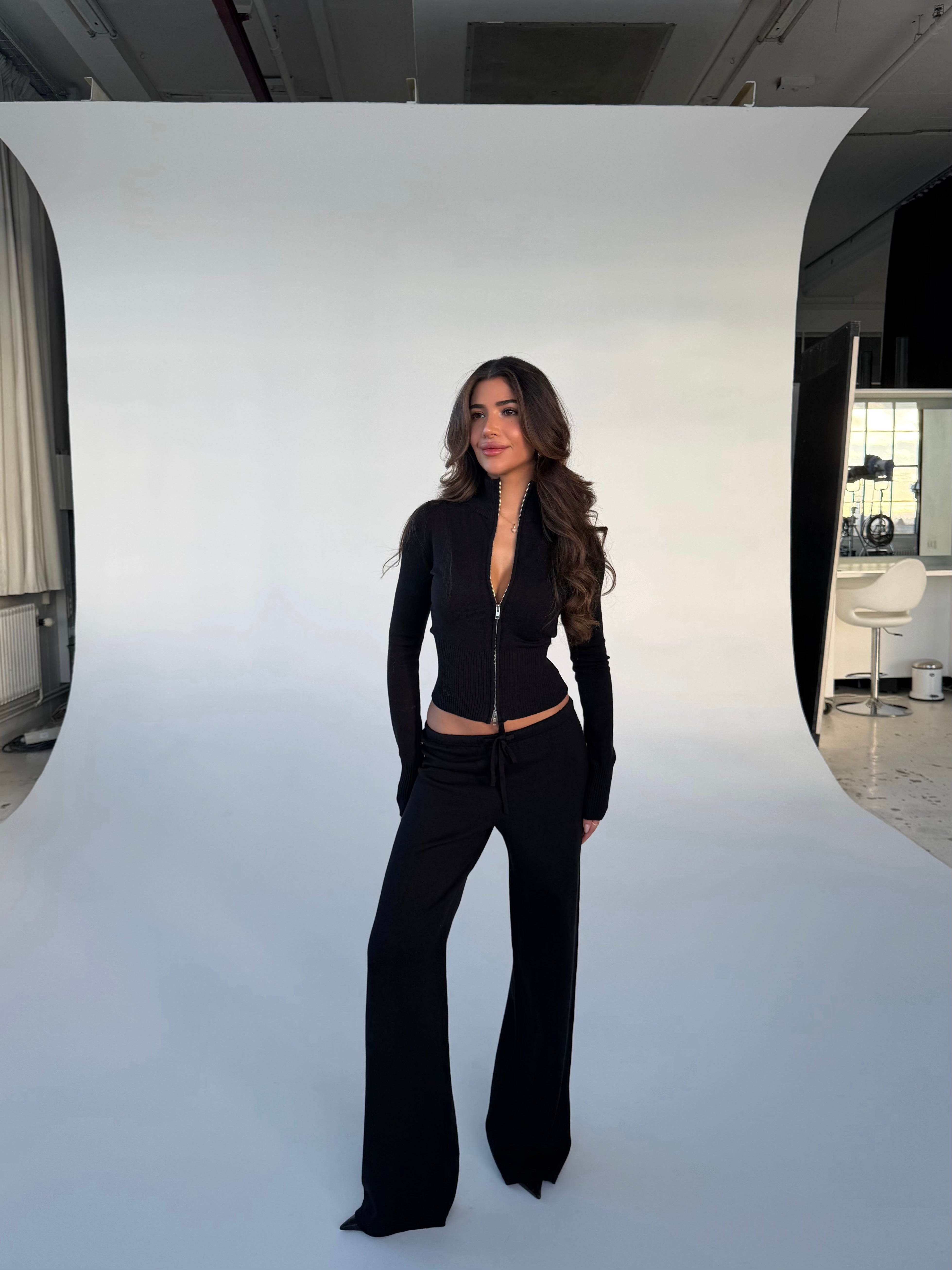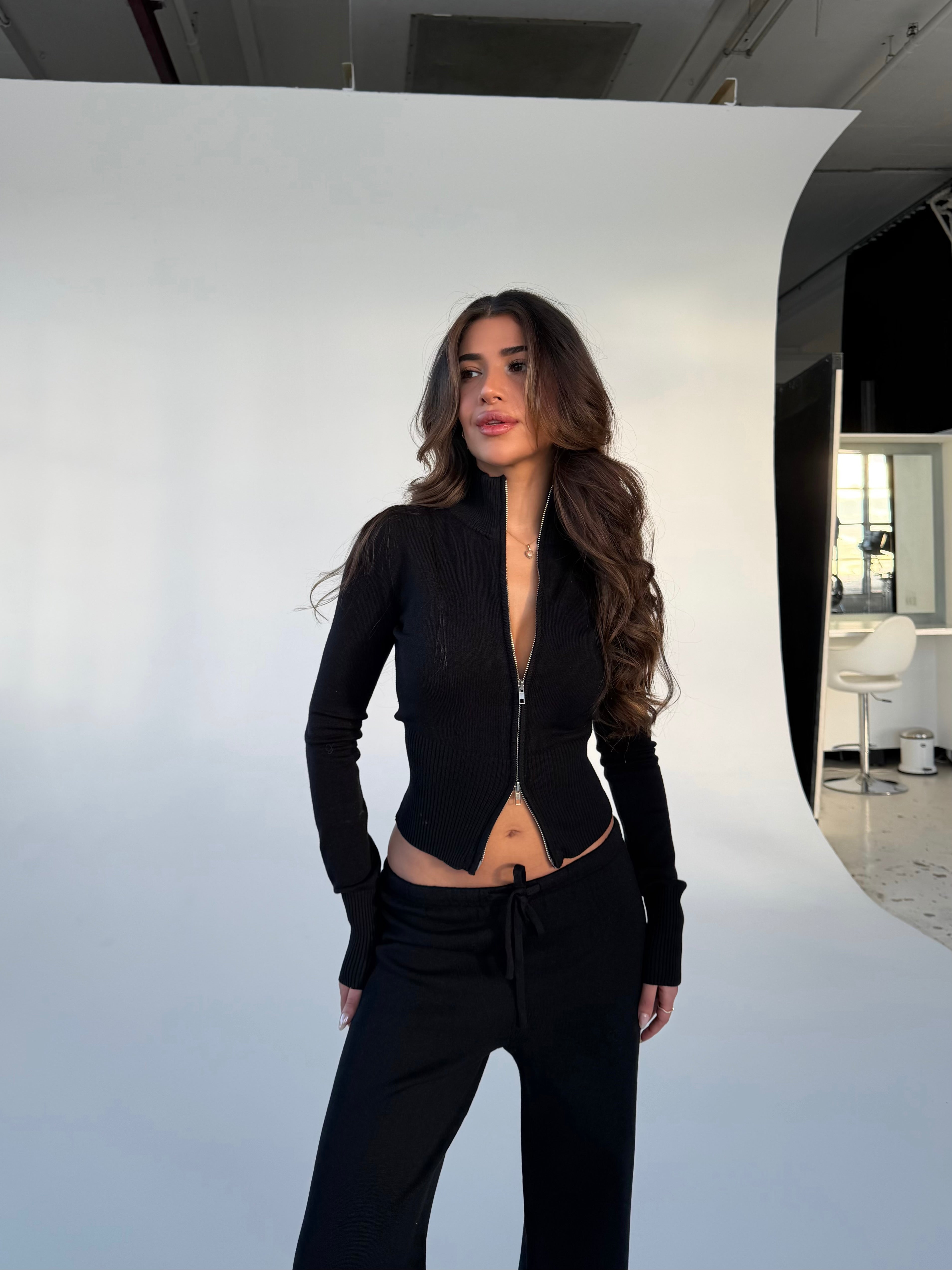 Zipper knit i det blødeste materiale, som er lavet af uldblanding. Den sidder flot til kroppen. Den kan lynes både oppe og nedefra.